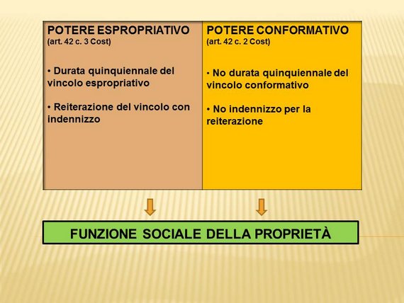 trattazione del potere espropriativo in rapporto al potere conformativo